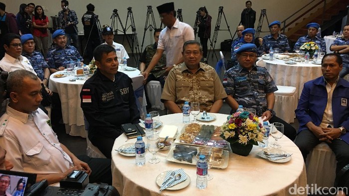 Pertemuan akan dilakukan dengan kegiatan diskusi. SBY duduk didampingi oleh Sekjen Partai Demokrat Hinca Panjaitan dan Ketua Tim Pemenangan Agus-Sylvi, Nachrowi Ramli.