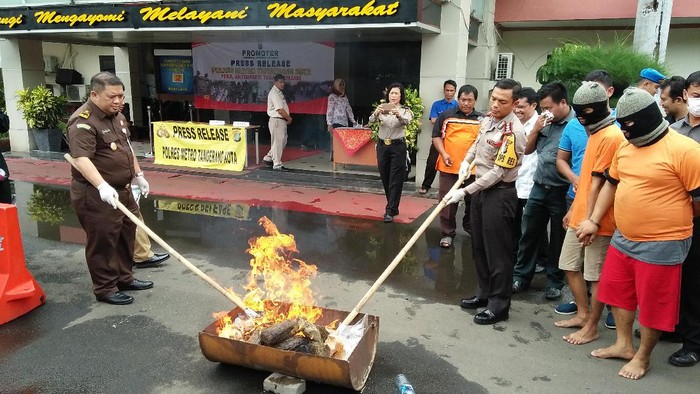 "Hari ini kami melakukan pemusnahan. Ganja ini merupakan barang bukti yang didapat dari 2 tersangka pada Januari lalu," kata Wakapolres Metro Tangerang AKBP Erwin Kurniawan di Mapolres Metro Tangerang, Jl Daan Mogot, Tangerang, Senin (13/2/2017).