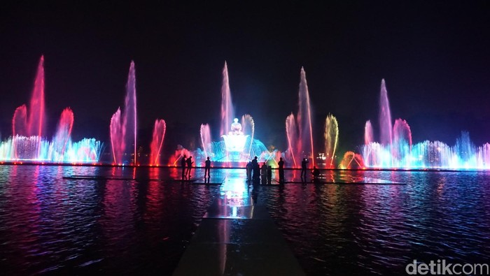 Khusus peresmian ini pemerintah hanya menyajikan dua sesi pertunjukan air mancur. Nantinya atau mulai Sabtu depan pertunjukan akan kembali digelar normal yakni tiga sesi pertunjukan mulai pukul 19.00 WIB hingga pukul 21.00 WIB. (fdn/fdn)