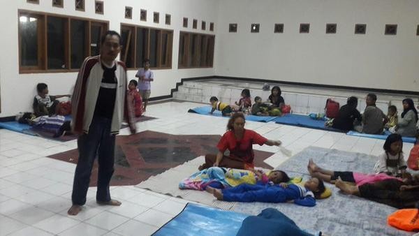 Kondisi para pengungsi tidak ada yang sakit dan logistik masih mencukupi. "Laporan dari lurah tidak ada warga yang sakit. Sementara logistik berdasarkan laporan warga tidak ada kekurangan. Logistik datang dari BNPB, BPBD, dan Dinsos. Kalau air dari Dinas Kebersihan dan lampu dari Dinas Perindustrian dan Listrik," tutur Desmanto.