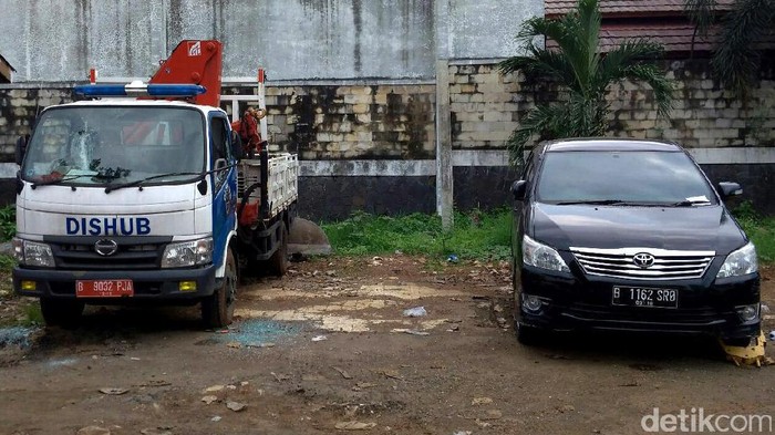 Mobil Dishub yang dirusak (Kanavino Ahmad Rizqo/detikcom)