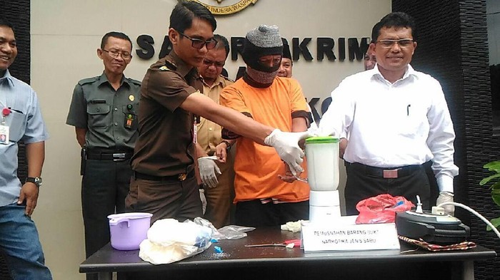 Sabu tersebut dimusnahkan dengan cara diblender. Sebelum dihancurkan, barang haram itu terlebih dulu dicampur dengan air garam.