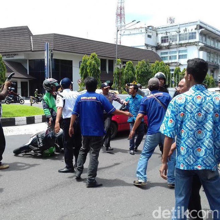 suasana bentrok ojek online dengan sopir taksi konvensional Foto: bayu ardi isnanto/detikcom |