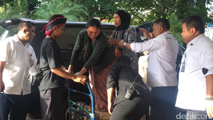 Kedua kaki masing-masing petani tersebut dalam keadaan disemen sehingga, saat hendak masuk ke kantor KSP, mereka dibantu beberapa orang menggunakan kereta dorong.