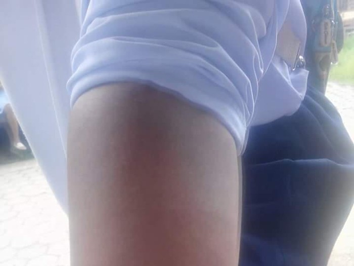 Tangan siswa yang memar akibat pemukulan yang dilakukan oleh Sumiyati. (Facebook Atul Radha)
