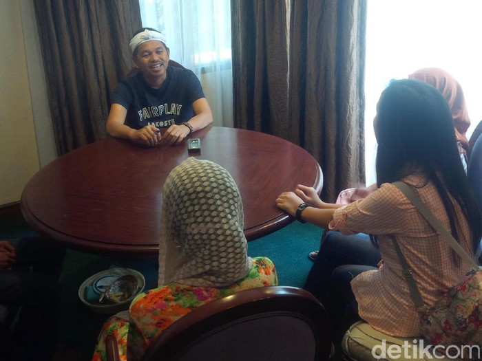 EK datang bersama orang tuanya Etik (46) ke salah satu hotel tempat Dedi sedang beristirahat. Dedi menyambut keduanya ramah.