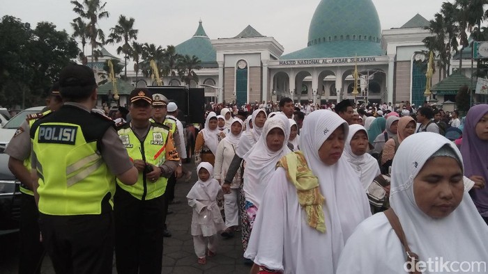 Massa yang sempat memenuhi Masjid Al Akbar Surabaya sejak Sabtu (1/4) malam mulai satu per satu meninggalkan lokasi. Mereka membubarkan diri usai mendirikan salat subuh berjamaah.