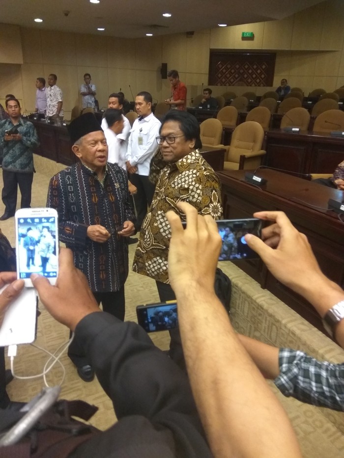Saat tiba, dia bersalaman dengan AM Fatwa. Ketum Hanura ini juga menyalami beberapa anggota DPD lainnya.