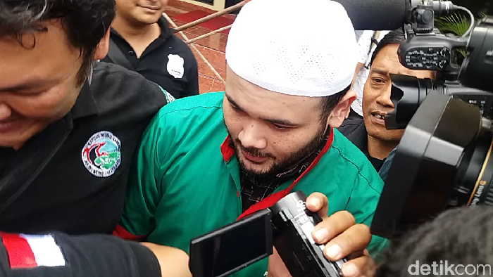 Dari pantauan detikcom, Ridho berangkat dari Polres pada Selasa (4/4/2017), sekitar pukul 10.40 WIB. Pelantun tembang 'Menunggu' itu keluar mengenakan peci putih dan pakaian tahanan warna hijau.