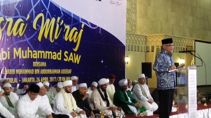 Kemudian dia menyapa peserta Isra Mi'raj yang jumlahnya diperkirakan mencapai ribuan jemaah. Acara ini juga dihadiri oleh Ustad Yusuf Mansyur, Wakil Ketua DPD 2014-2019 Farouk Muhammad, Habib Muhammad Abdurrahman Assegaf yang datang dari Jeddah, Arab Saudi, dan Dewan Syuro Majelis Rasulullah Habib Nabiel Al Musawa. Kemudian para peserta melakukan salawat bersama.