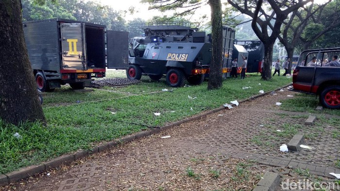 Seperti pantauan detikcom di kawasan Gelora Bung Karno (GBK), tepatnya di eks Senayan Golf Driving Range, Jakarta, Senin (1/5/2017), tampak anggota dari Mabes Polri sedang berjaga. Kabarnya, akan dilakukan apel pagi untuk teknis pengamanan.