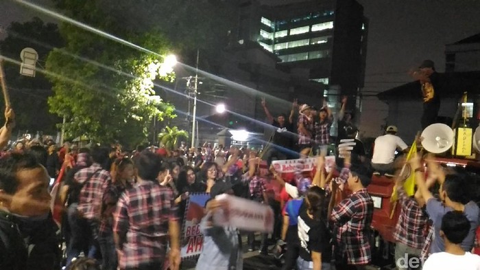 Massa aksi tersebut menuntut Ketua Hakim Pengadilan Tinggi Jakarta menandatangani surat agar Ahok menjadi tahanan kota.