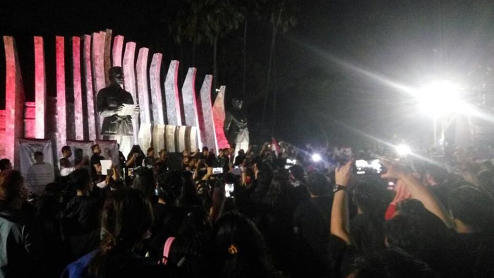 Massa sejak sore tadi sudah memenuhi Taman Tugu Proklamasi. Mereka kompak memakai pakaian serbahitam. Massa pendukung Ahok itu juga menyalakan lilin dan berdoa memberi dukungan kepada Ahok.