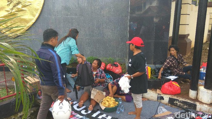 Pantauan detikcom di depan Mako Brimob, Kelapa Dua, Depok, Jawa Barat, Kamis (11/5/2017) sekitar pukul 09.05 WIB, sejumlah orang terlihat menggelar tikar di sekitar lokasi. Aktivitas yang mereka lakukan seperti sarapan pagi.