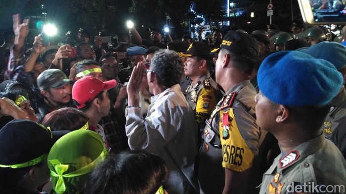 Pantauan detikcom di lokasi, polisi kemudian menyiagakan water cannon dan pasukan anti-huru hara. Polisi berbaris di depan massa aksi. Namun massa aksi terus bernyanyi dan tidak meninggalkan lokasi.
