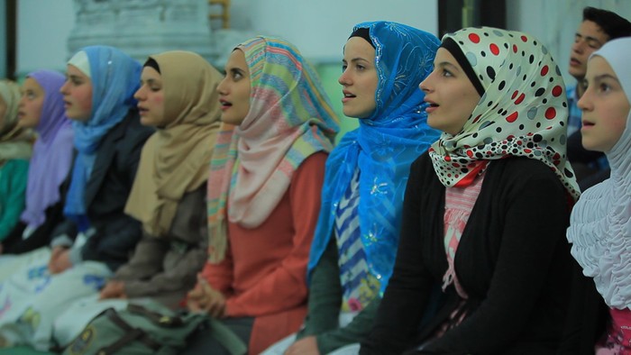Foto: Lantunan salawat menjadi kegiatan rutin para muslimah dan anak muda Torbeshi di Desa Skudrinye, Macedonia (Irfan Padli/TRANS7) |