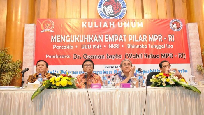 OSO menegaskan, Empat Pilar bangsa yakni Pancasila, Undang-Undang Dasar Negara Republik Indonesia 1945, NKRI dan Bhinneka Tunggal Ika sudah final. Tidak boleh diotak-atik, apalagi mau diganti.