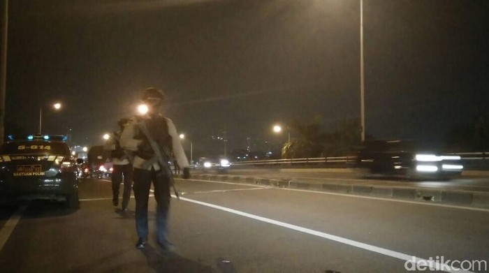 Polisi tidak hanya melakukan sterilisasi di lokasi ledakan bom di Terminal Kampung Melayu, Jakarta Timur. Sejumlah personel Brimob bersenjata api laras panjang juga melakukan sterilisasi hingga ke flyover Jl Basuki Rahmat.