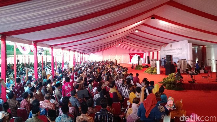 "Belum dikasihkan sertifikatnya. Tapi berhubung saya pengin ketemu Pak Presiden, saya ikut saja acara ini," kata Titin disambut tawa seribuan orang.