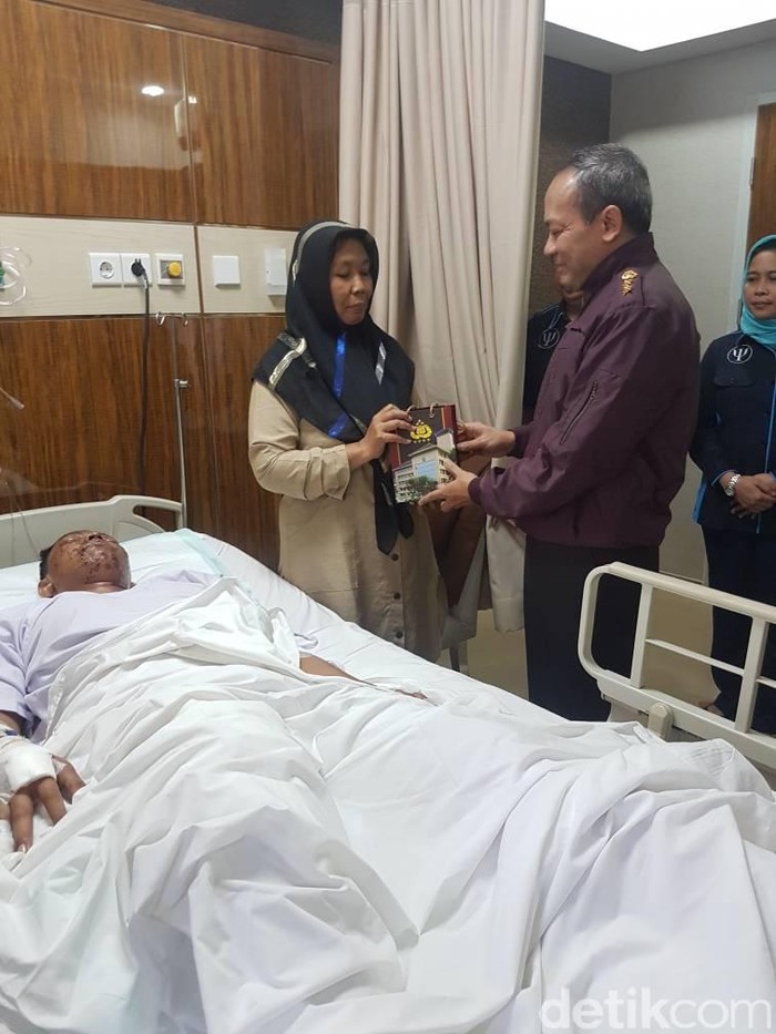 Arief, mewakili Kapolri Jenderal Polisi Tito Karnavian, memantau perkembangan kesehatan Bripda Yogi sekitar pukul 10.30 pagi tadi. "Mewakili Kapolri, saya mengunjungi Bripda Yogi yang luka berat di kedua matanya akibat bom Kampung Melayu," sambung Arief.