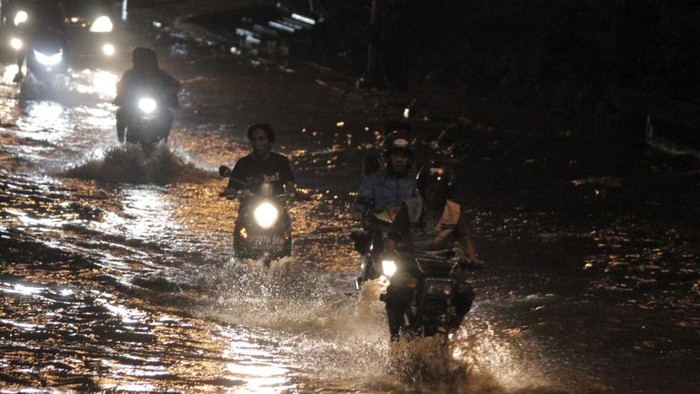 Seperti yang terjadi di Jalan Raya Bojong. Banyak pengendara yang akhirnya mendorong motornya karena mesinnya mati akibat berusaha menerobos genangan banjir.