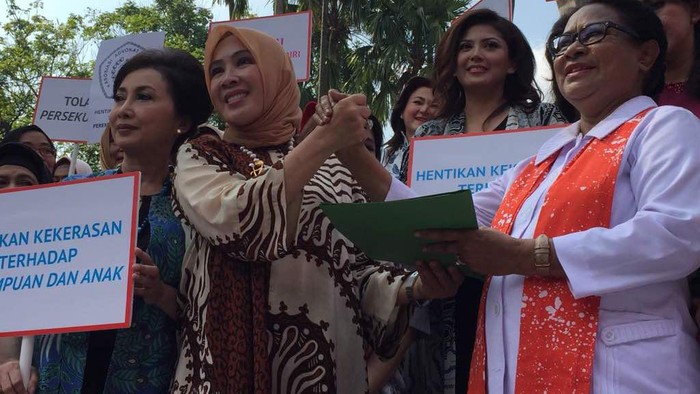 usai menghadiri 'Deklarasi Penolakan Kekerasan, Eksploitasi, Persekusi Terhadap Perempuan dan Anak' di Monumen Proklamasi Kemerdekaan, Jalan Proklamasi, Pegangsaan, Menteng, Jakarta Pusat, Jumat (9/6/2017).