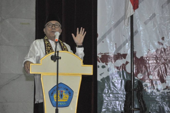 Hal ini disampaikan Zulkifli saat menyampaikan Pidato Kebangsaan di Universitas Lampung dalam rangkaian Seminar Pancasila, hari ini.