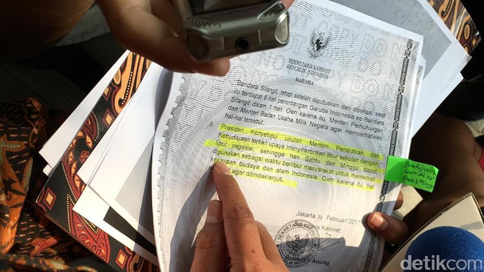 "Ini hasil putusan ratas. Jadi ratas itu memutuskan, presiden menyetujui usulan Mendikbud terkait upaya mensinkronkan libur sekolah dengan libur pegawai sehingga Sabtu dan minggu dapat digunakan sebagai hari libur masyarakat untuk menikmati kekayaan budaya dan alam Indonseia. Oleh karena itu, hal tersebut agar ditindaklanjuti. Ini hasil ratas, jadi tidak betul kalau saya bertindak tanpa dasar ratas," jelasnya.