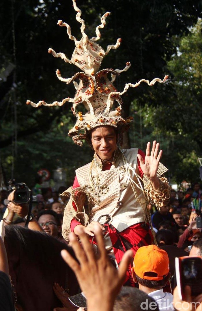 Jokowi berada di tengah-tengah warga saat Jakarnaval 2013. Foto: Grandyos Zafna