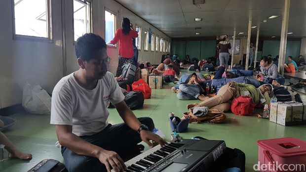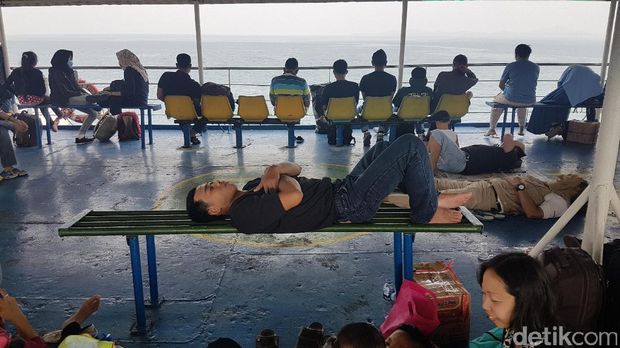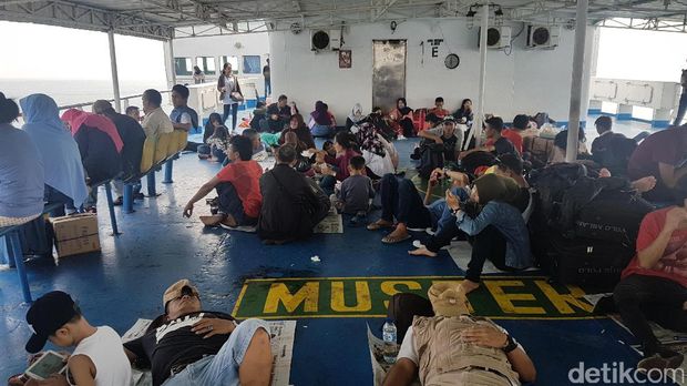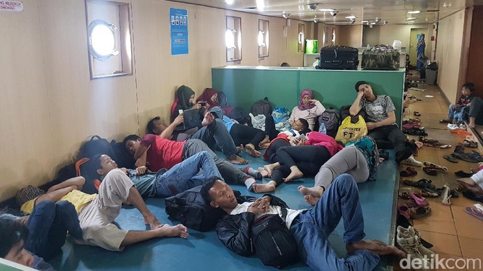 Seperti yang dilihat detikcom di kapal Safira Nusantara. Para pemudik dengan tujuan Sumatera memenuhi tempat istirahat di dalam kapal.
