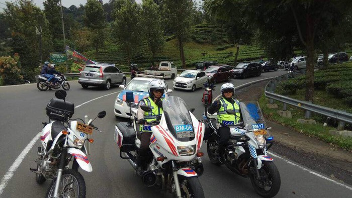 Polisi mengatur arus lalu lintas di jalur Puncak, Senin (26/6/2017) Foto: Dok. Polres Bogor