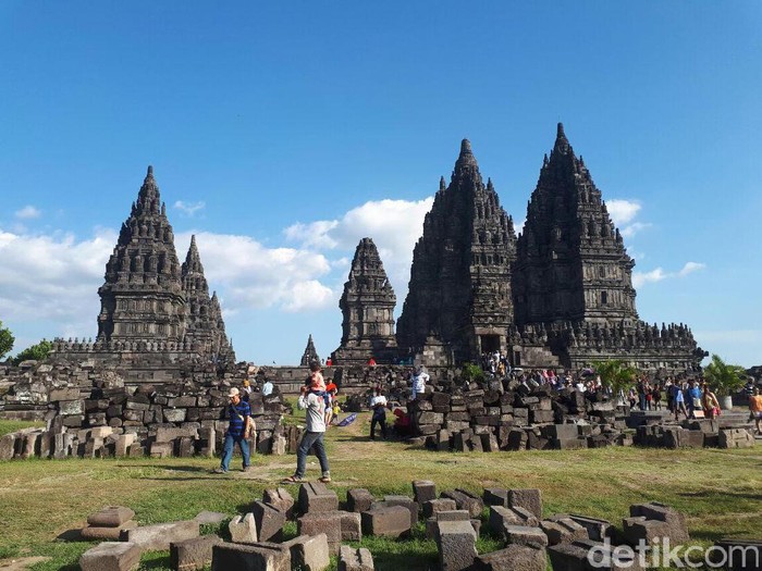 Pantauan detikcom pukul 07.00 WIB di Candi Prambanan, Sleman, Yogyakarta, pintu masuk wisatawan di sebelah timur masih terbuka seperti biasa. Antrean tiket memanjang.