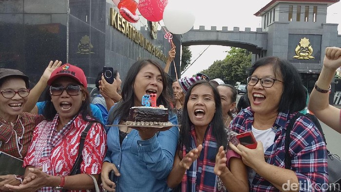 "Happy birthday Ahok, happy birthday Ahok, happy birthday, happy birthday, happy birthday Ahok," teriak pendukung Ahok dengan kompak di depan gerbang Mako Brimob, Kelapa Dua, Depok, Jawa Barat, Kamis (29/6/2017).
