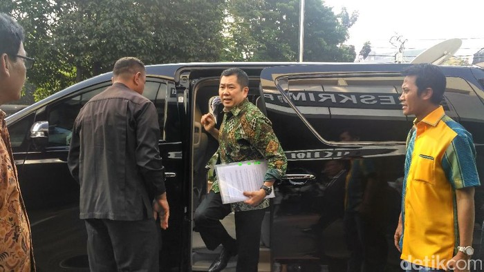 Hary Tanoe tiba di Direktorat Siber Bareskrim Polri, Jakarta Pusat, Jumat (7/7/2017) sekitar pukul 08.50 WIB. Ia tampak mengenakan batik berwarna hijau.