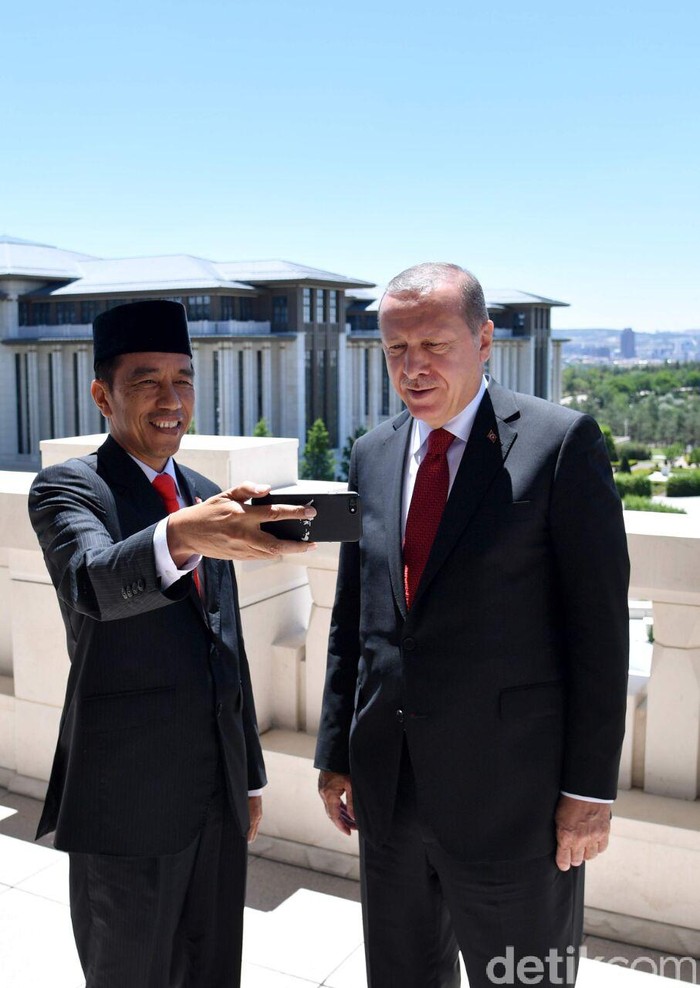 Jokowi mengambil kesempatan untuk nge-vlog pada saat pertemuan tete-a-tete alias pertemuan empat mata. Pertemuan itu dilakukan setelah disambut secara kenegaraan oleh Erdogan dan sebelum pertemuan bilateral.