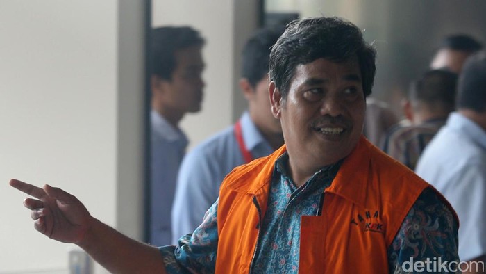 "Nggak ada. Nggak ada," jawabnya sambil memasuki mobil tahanan.