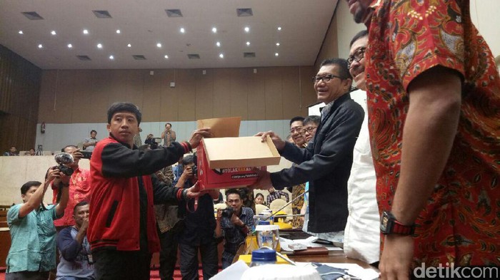 Madrasah Anti Korupsi PP Pemuda Muhammadiyah menjadi perwakilan audiensi yang berlangsung di gedung DPR, Senayan, Jakarta (14/7/2017). Mereka dipimpin Direktur Madrasah Anti Korupsi PP Pemuda Muhammadiyah, Virgo Sulianto Gohardi.