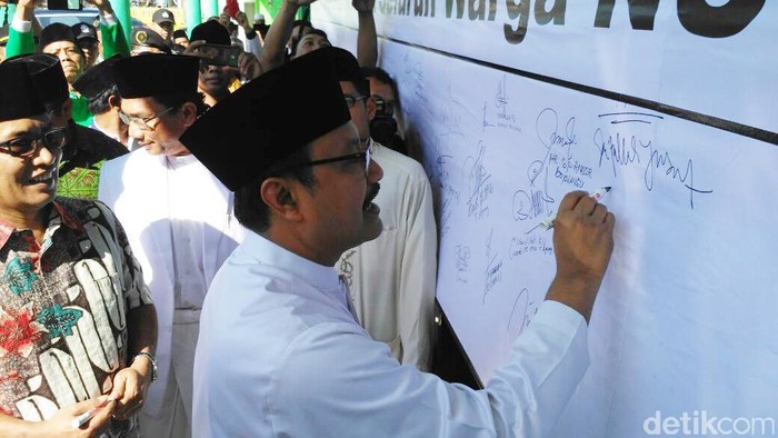 "Di Jawa Timur hampir memiliki 40 juta penduduk, pemilihnya 30 juta lebih, itu bukan hal yang mudah. Kami perlu jembatan-jembatan untuk sampai ke masyarakat, salah satunya tentu lewat keluarga besar Nahdlatul Ulama," ujarnya.