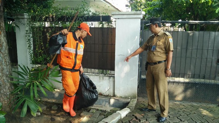 Lurah Menteng turun tangan mengawasi kinerja pasukan oranye. Foto: Fotografer: Aditya Fajar/detikcom |