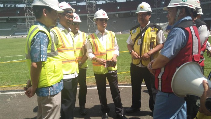 Usai mendengarkan paparan realisasi pembangunan proyek renovasi GBK, rombongan TP4D bersama Winarto dan Sri Hartoyo meninjau Stadion Utama GBK. Di stadion utama, Tony sempat berbincang mencoba 'kekuatan' kursi penonton.