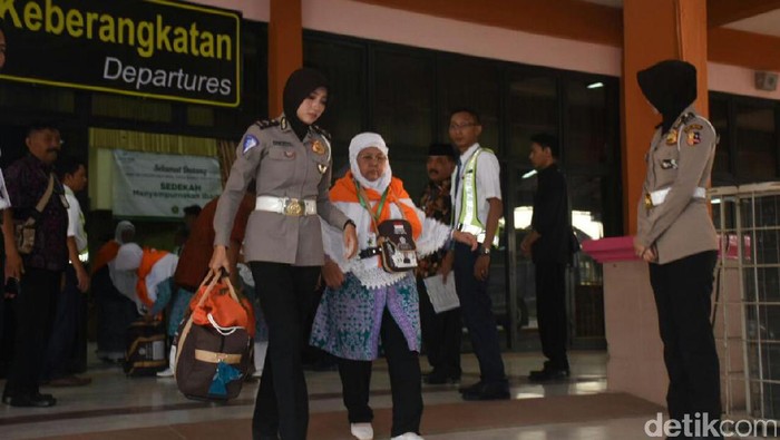 "Sehat dan selamat ya ibu bapak. Bapak dan ibu semoga menjadi haji yang mabrur. Tetap dalam lindungan dan karunia Allah SWT, Amin" ucap Bripda Maharani saat membantu calon jemaah haji.