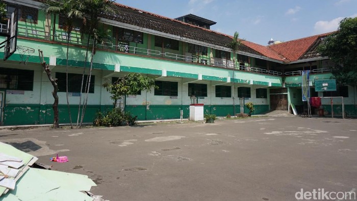 Saat ini, sebagian besar bagian depan sekolah sudah tidak beratap. Sedangkan aula dan bangunan sebelah kanan depan tidak dibongkar karena masuk dalam cagar budaya. (aik/rvk)