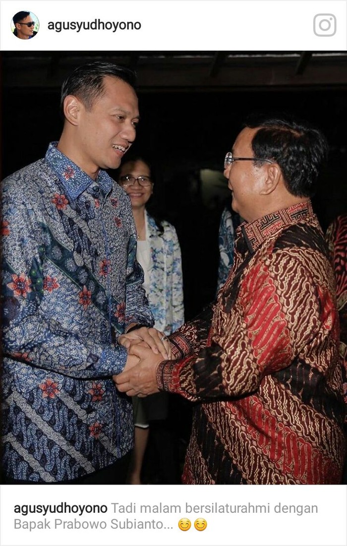"Tadi malam bersilaturahmi dengan Bapak Prabowo Subianto," tulis Agus.