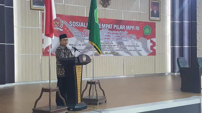 Hal itu dia katakan dalam pidato sosialisasi empat pilar MPR di Kampus Universitas Islam Negeri Maulana Malik Ibrahim, Malang, Jumat (28/7/2017).