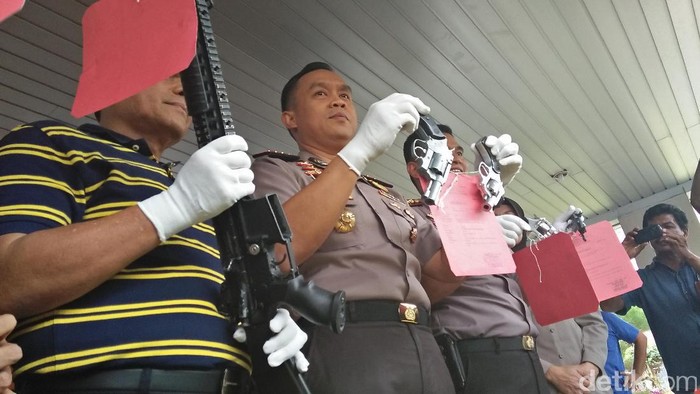 Sebelumnya, polisi menangkap 4 orang terkait dengan pembuatan dan peredaran senjata api rakitan di Tangerang. Sejumlah senjata api dan ratusan peluru ikut diamankan.