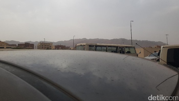 Di Madinah, hujan turun sekitar pukul 17.30 waktu Arab Saudi (WAS), Senin (31/7/2017). Angin berembus kencang. Namun saat tanah belum juga basah, hujan sudah berhenti. Suhu panas kembali menyergap, berkisar 43 derajat Celsius. Hari ini suhu puncak terjadi pada pukul 14.00, yakni 48 derajat Celsius.