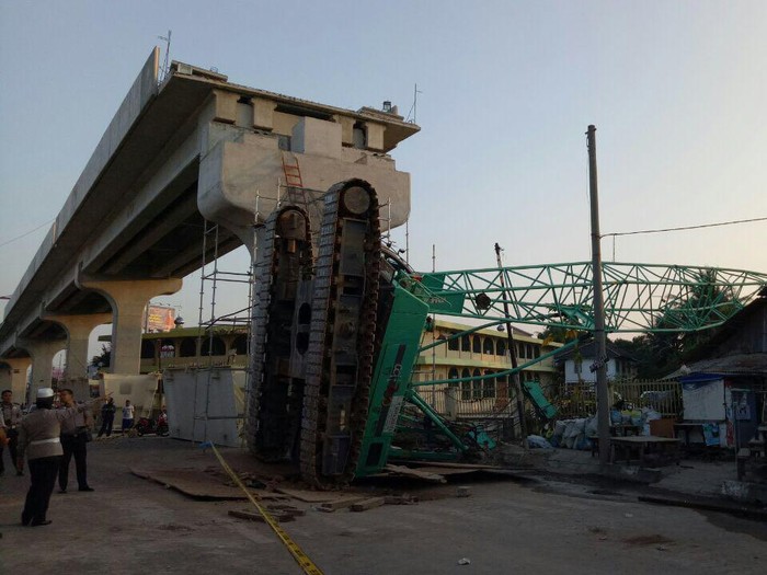 "Awalnya itu memang karena tumpuan crane amblas, jadi tidak kuat menahan beban berat. Akhirnya crane dengan beban 70 ton langsung terjungkal dan diikuti oleh crane yang 80 ton," ujar Maruly saat dikonfirmasi detikcom, Selasa (1/8/2017).