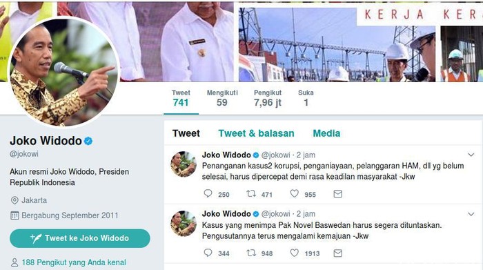 Hari ini, lewat akun Twitter-nya, Jokowi kembali bicara soal penuntasan kasus-kasus pelanggaran HAM. Jokowi meminta kasus-kasus HAM, seperti juga kasus korupsi dan kekerasan, dipercepat penyelesaiannya.