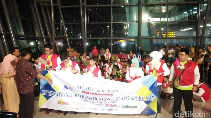 Pantauan detikcom, rombongan pelajar itu keluar dari terminal kedatangan Bandara Soekarno-Hatta sekitar pukul 19.40 WIB, Senin (7/8/2017). Di lokasi penjemputan, para orang tua sudah menunggu.