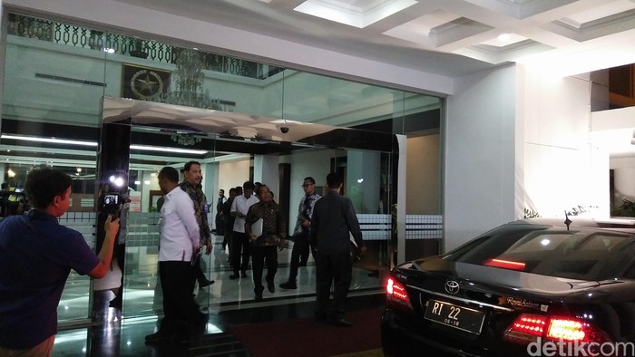 Para menteri dan pejabat lain itu mulai datang ke Kompleks Sekretariat Negara, Jl Veteran, Jakarta Pusat, sekitar pukul 19.00 WIB, Rabu (9/8/2017). Mereka langsung masuk ke Gedung Utama Setneg.